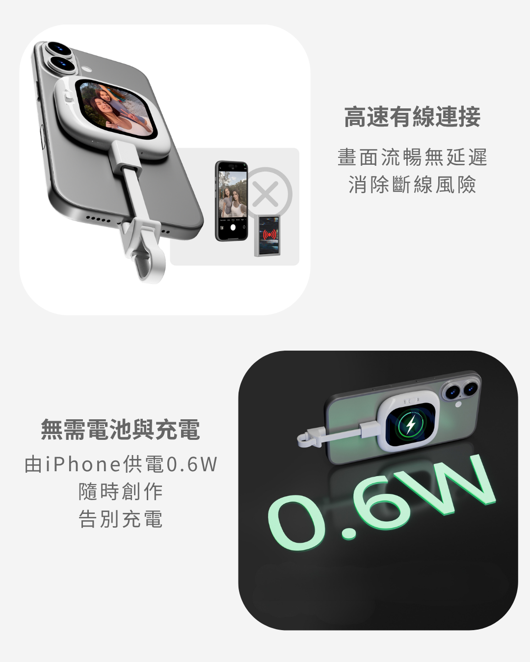 它讓你能在使用手機「後鏡頭」錄影時