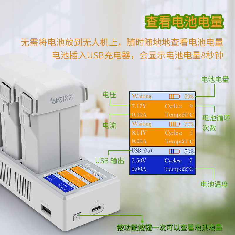 可同時充電三顆電池